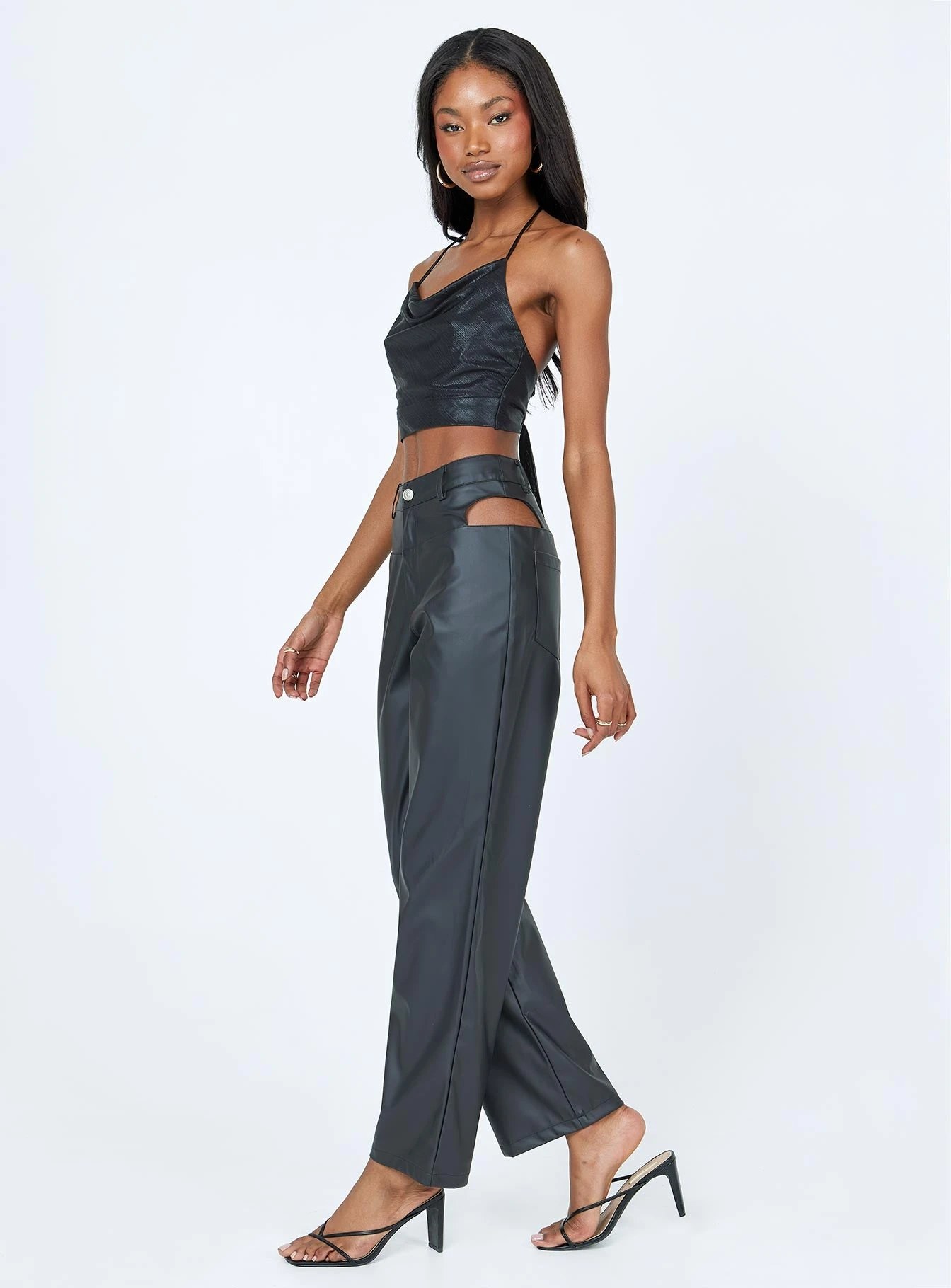 Princess Polly Desire Hip Cut Out PU Pants Black