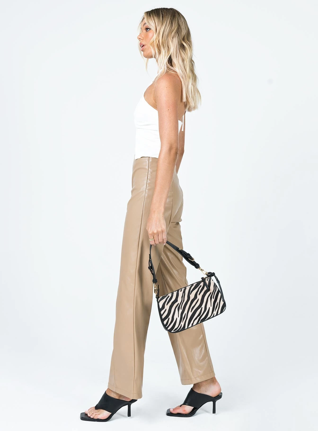 Princess Polly Gia Panel PU Pants Beige