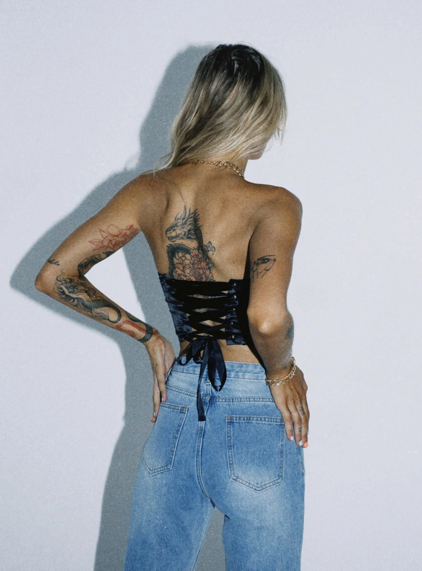 - Lace up back fastening