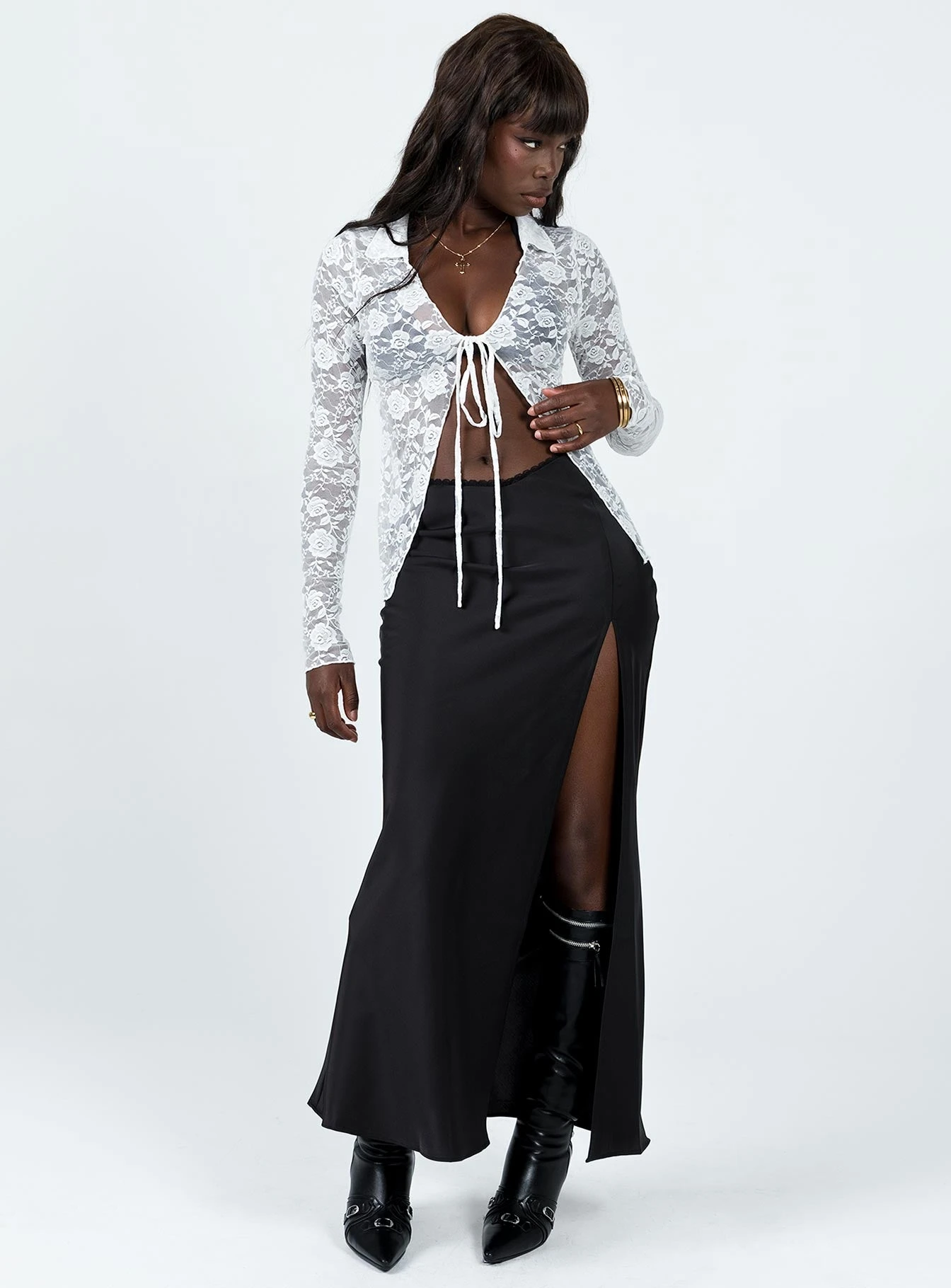 Princess Polly Shallard Lace Long Sleeve Top White