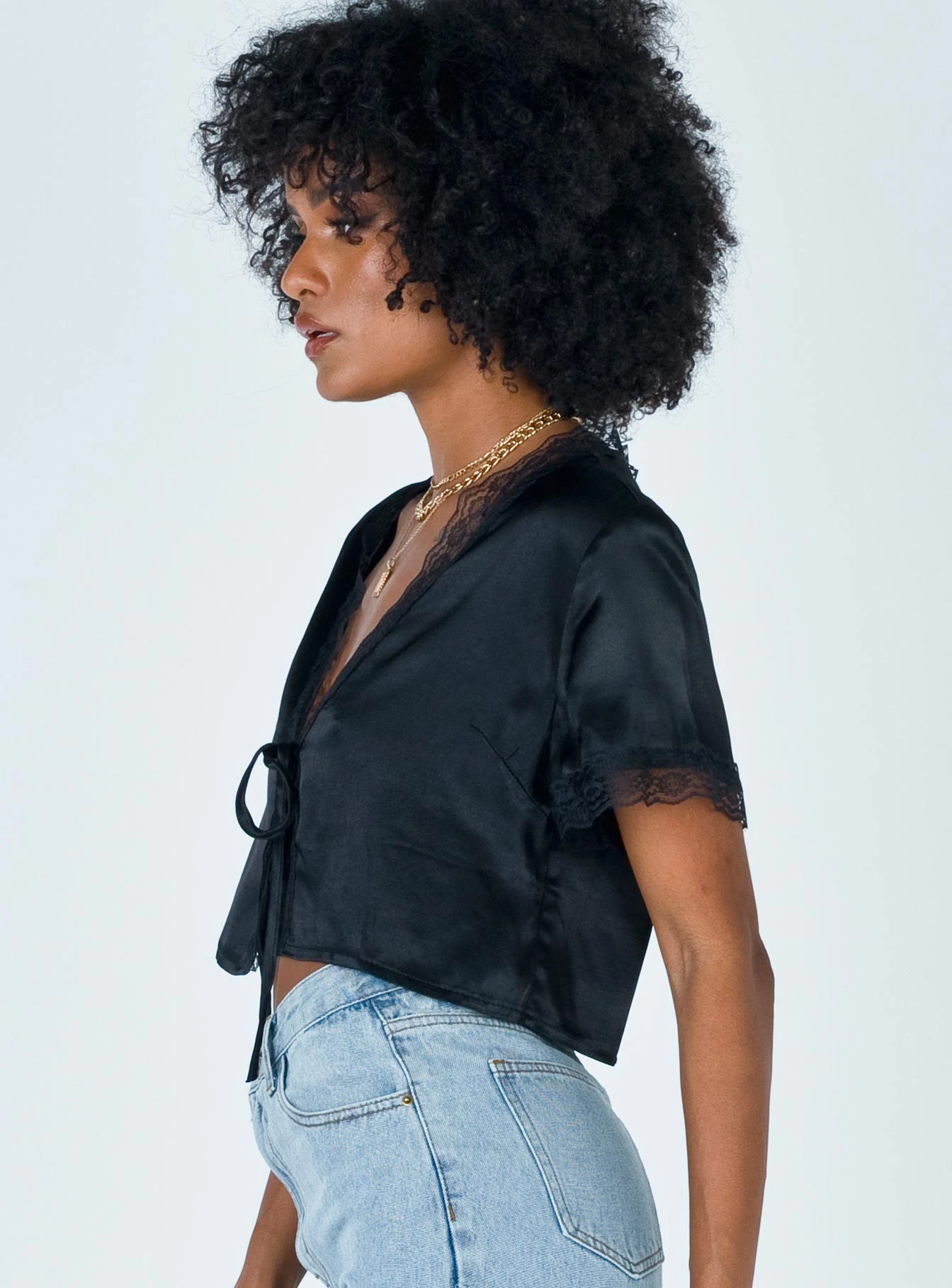 Princess Polly Vintage Tie Up Top Black